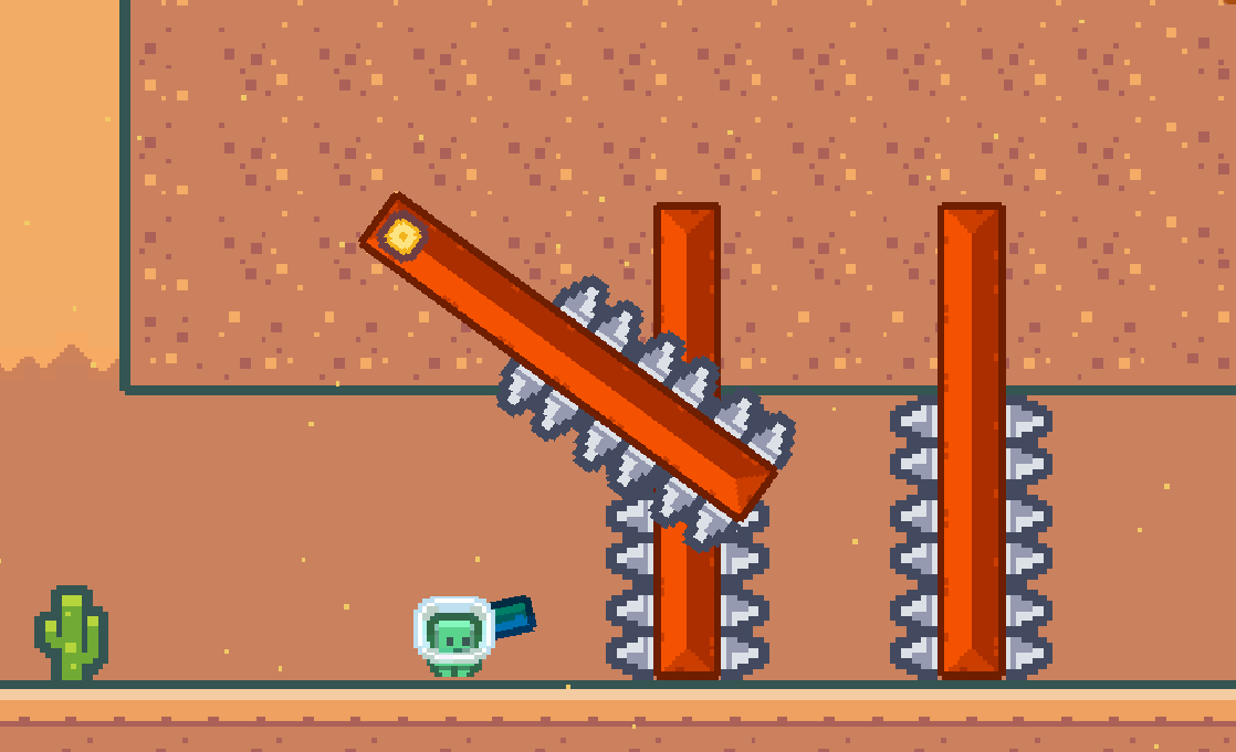 A simple platform puzzle game, where you have to shoot wooden platforms to progress further. When you shoot a wooden platform, it will get pinned, and set a pivot. Now you can use the Q and E keys to rotate the platform to make it easier to progress.